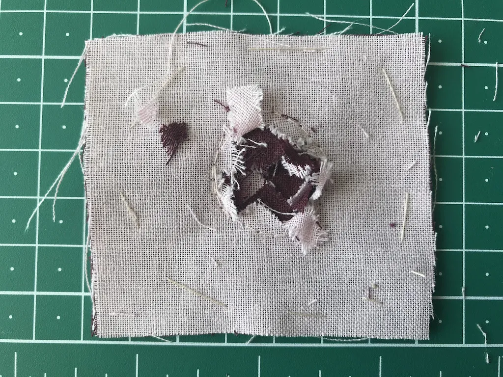 By rubbing the stripes you make the fabric fray a little bit and the stripes will also slightly stand out. Cut off small pieces of the longest stripes – mostly from the upper layer (see the images below).